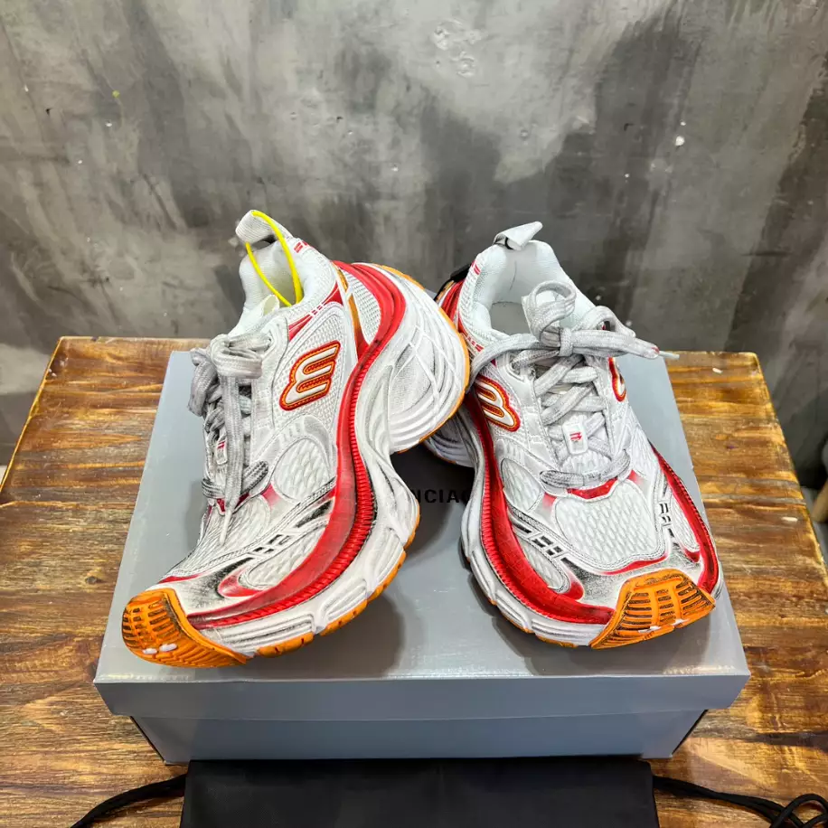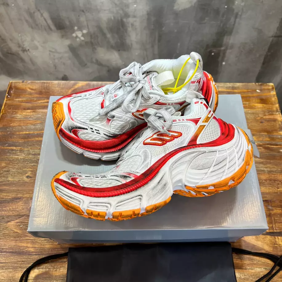 The Balenciaga 10XL Sneaker crafted with a unique worn-out effect. it combines mesh. TPU. and rubber materials for a modern aesthetic and exceptional comfort. The Balenciaga logo debossed on the tongue and the striking 3B sports icon artwork in rubber on each side. The sporty B logo adorns the upper. enhancing its athletic appeal. Practical details include a shoe size embroidery at the back and convenient back and tongue pull-on tabs. ensuring both style and ease of wearing.