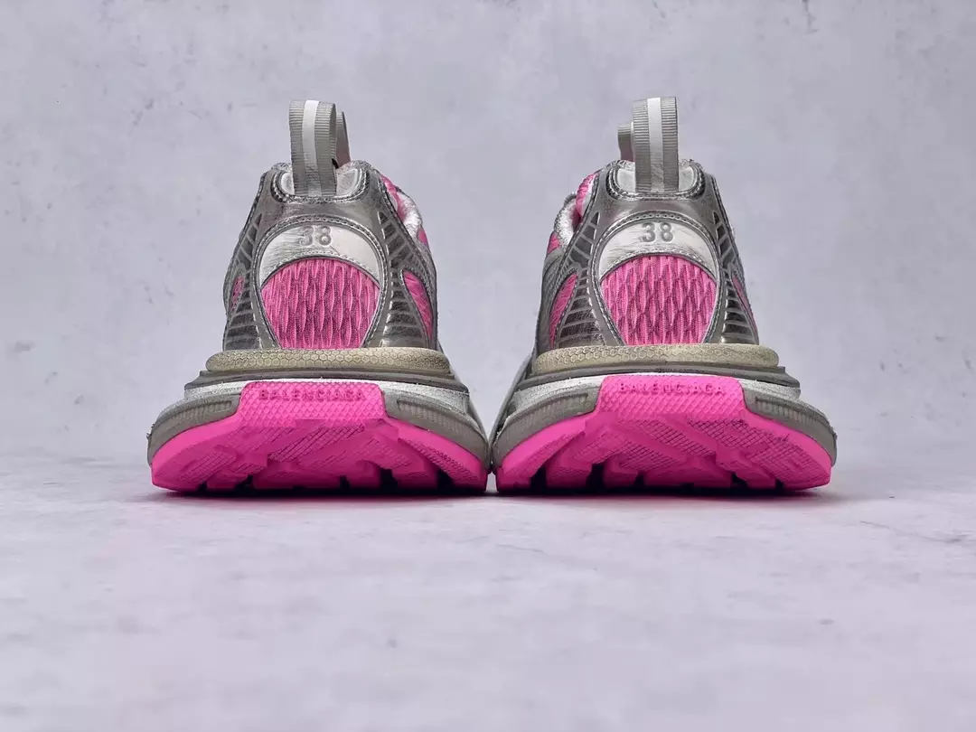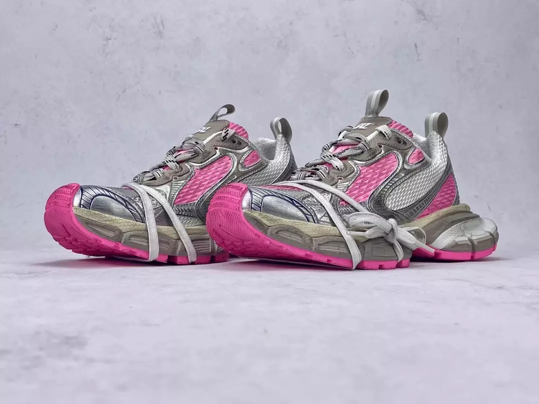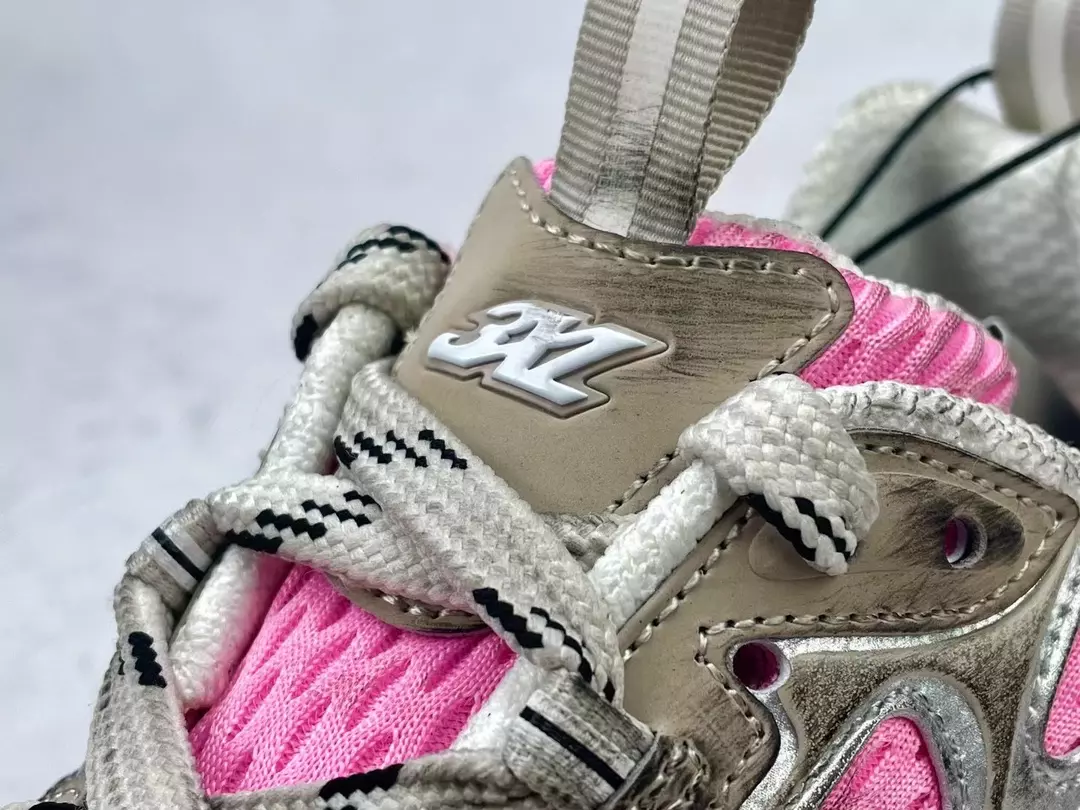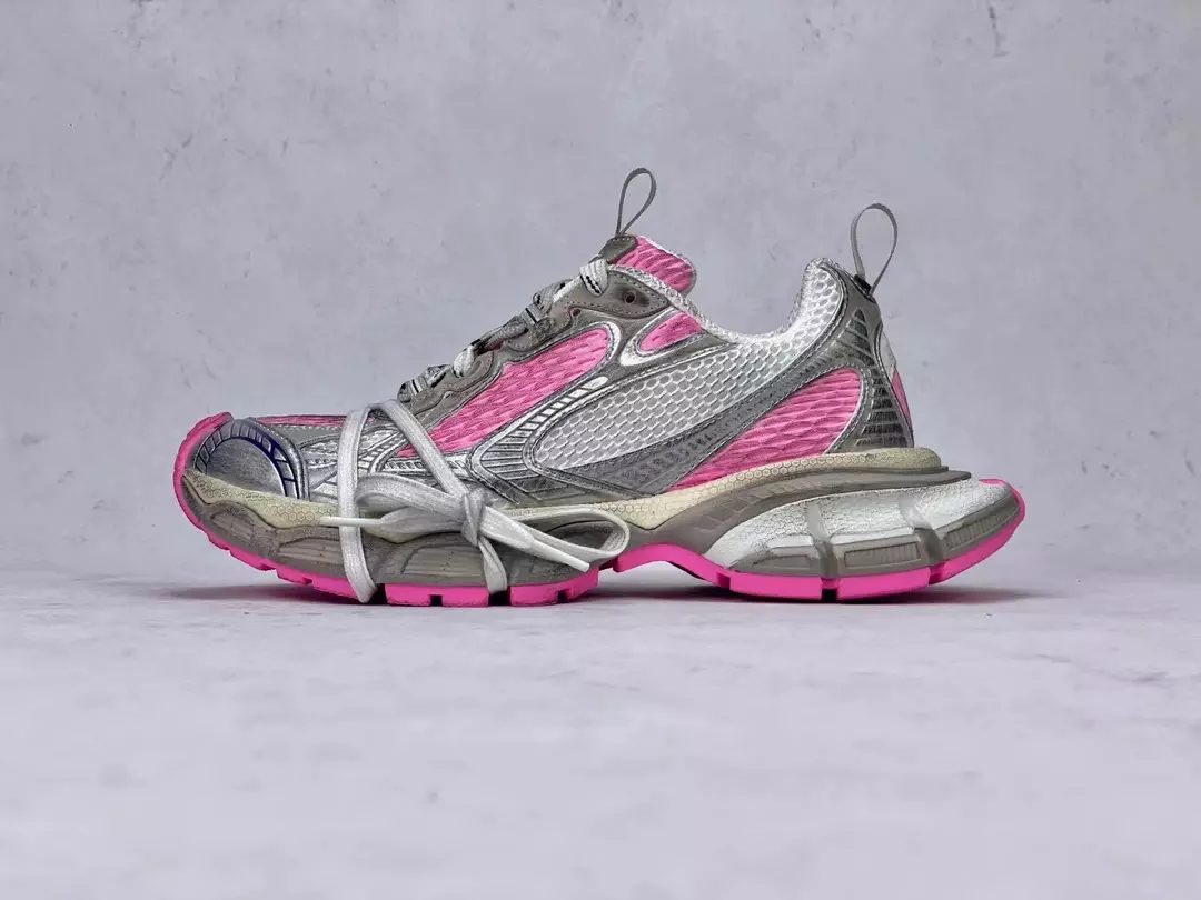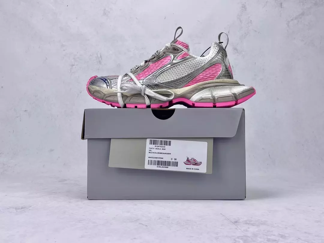 The Balenciaga 3XL Sneaker offers a unique blend of style and comfort. Crafted from a combination of mesh and polyurethane. it features a worn-out effect for a distinctive look. The Balenciaga logo is prominently displayed at the edge of the toe and at the back. adding a touch of brand identity. Additionally. the size is embossed on the upper and at the back of the heel for added detail. One of the standout features is the 3XL rubber branding on the tongue. which includes reflective detailing for added visibility. The sneaker also comes equipped with a back pull-on tab and a tongue pull-on tab. both featuring reflective elements.