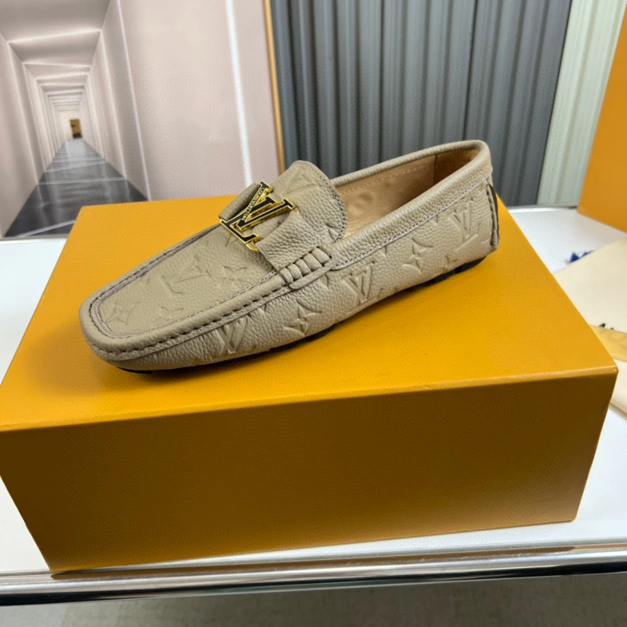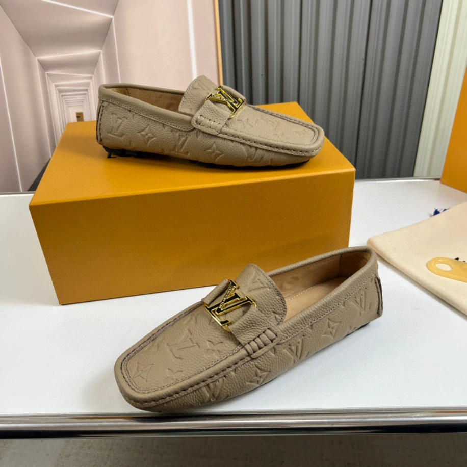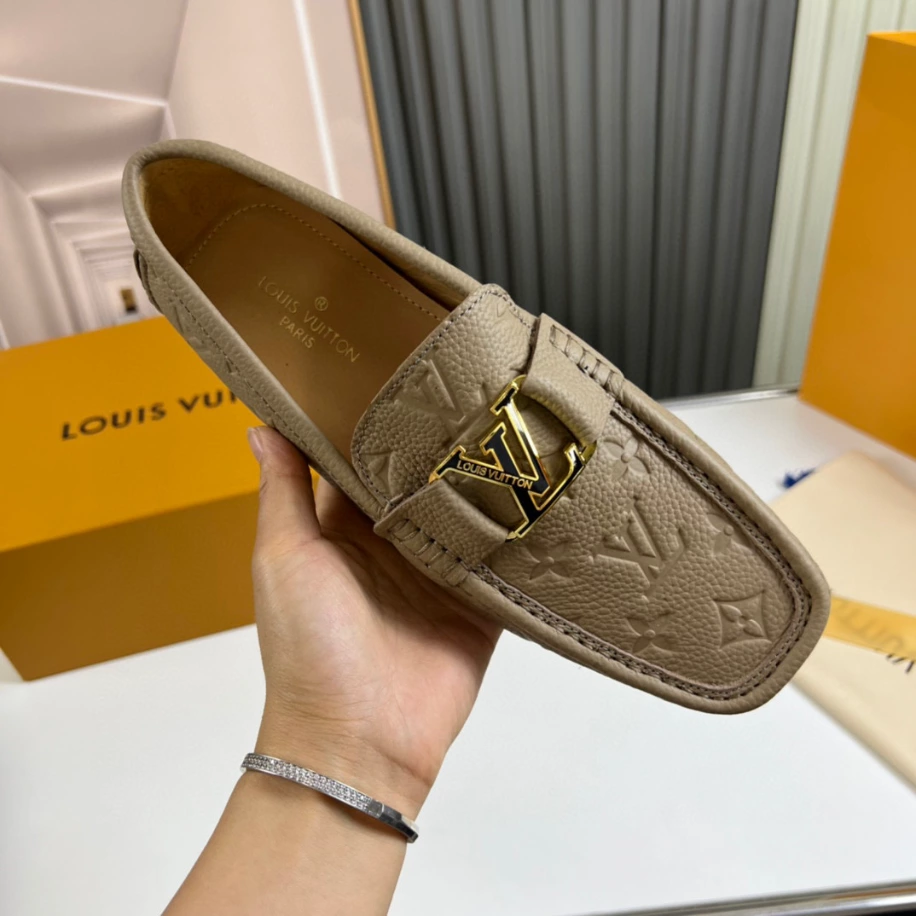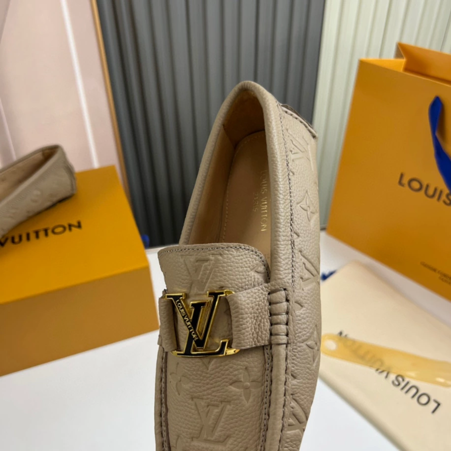 LV Monte Carlo Moccasin – Louis Vuitton's iconic grained Taiga calf leather. this version of the timeless Monte Carlo moccasin features a tubular construction without an insole. ensuring lightness and suppleness. The hand-stitched vamp is adorned with an LV Initials accessory. while the flexible outsole includes rubber pads solely at the front and back.