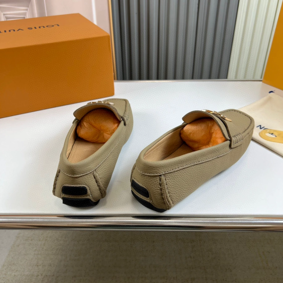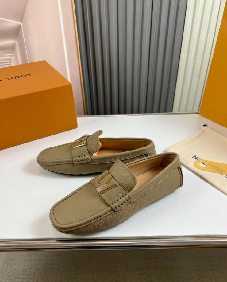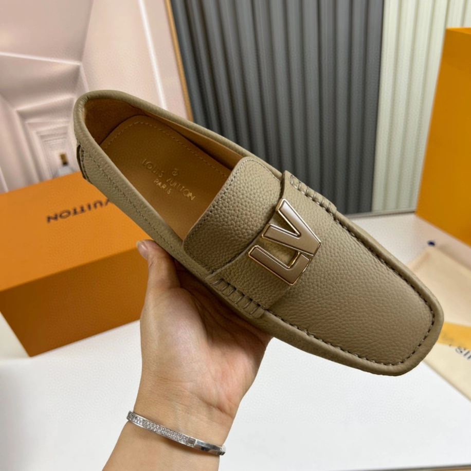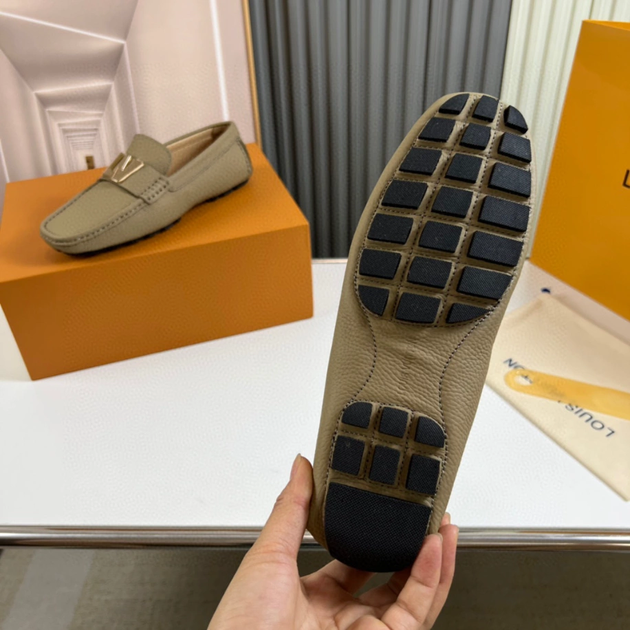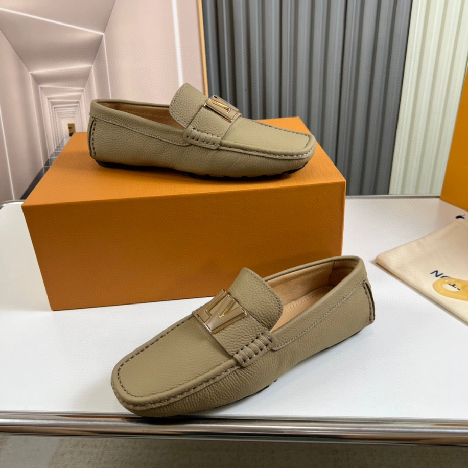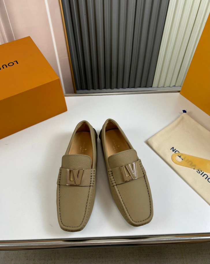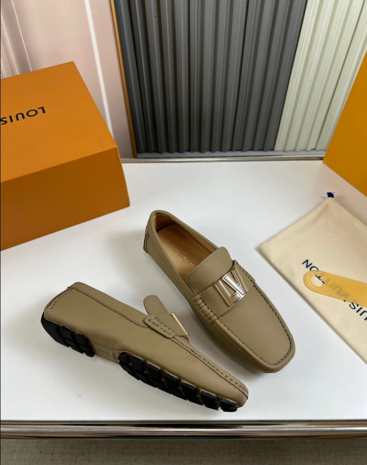 LV Monte Carlo Moccasin – Louis Vuitton's iconic grained Taiga calf leather. this version of the timeless Monte Carlo moccasin features a tubular construction without an insole. ensuring lightness and suppleness. The hand-stitched vamp is adorned with an LV Initials accessory. while the flexible outsole includes rubber pads solely at the front and back.