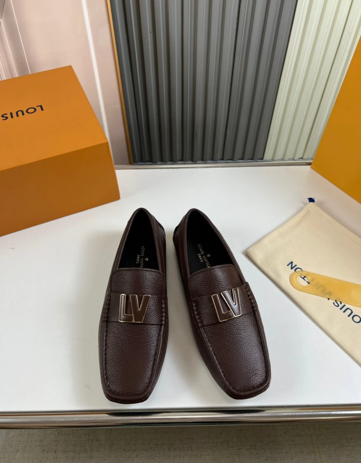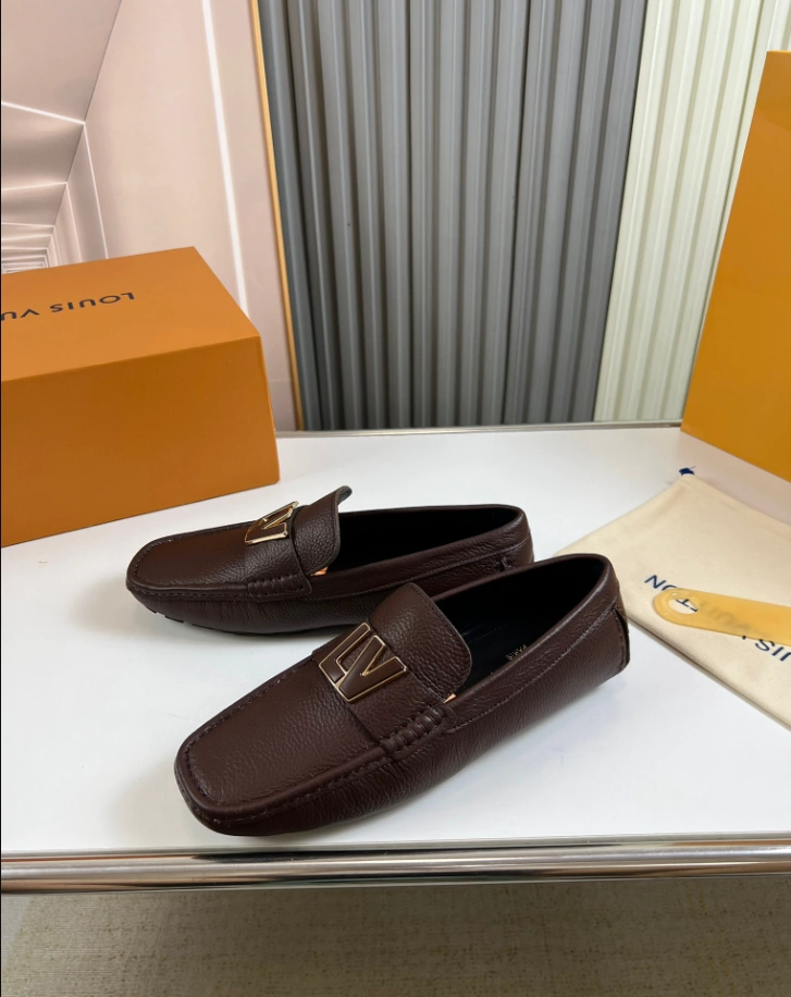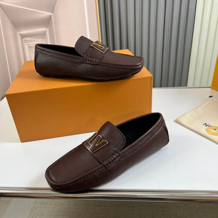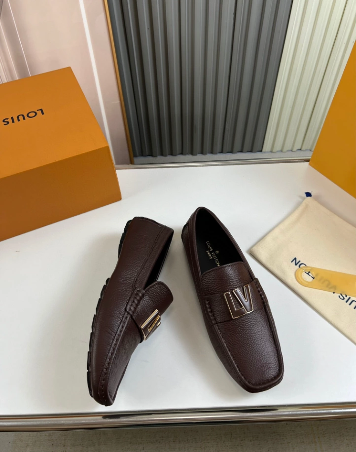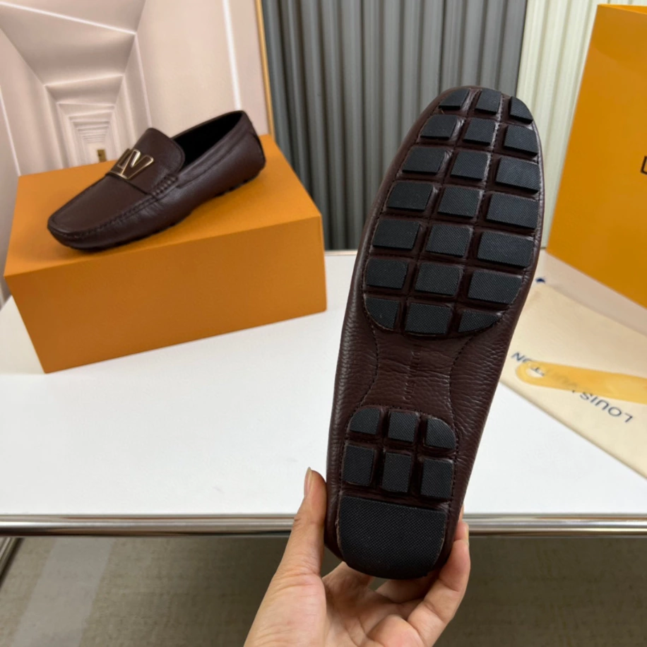 LV Monte Carlo Moccasin – Louis Vuitton's iconic grained Taiga calf leather. this version of the timeless Monte Carlo moccasin features a tubular construction without an insole. ensuring lightness and suppleness. The hand-stitched vamp is adorned with an LV Initials accessory. while the flexible outsole includes rubber pads solely at the front and back.