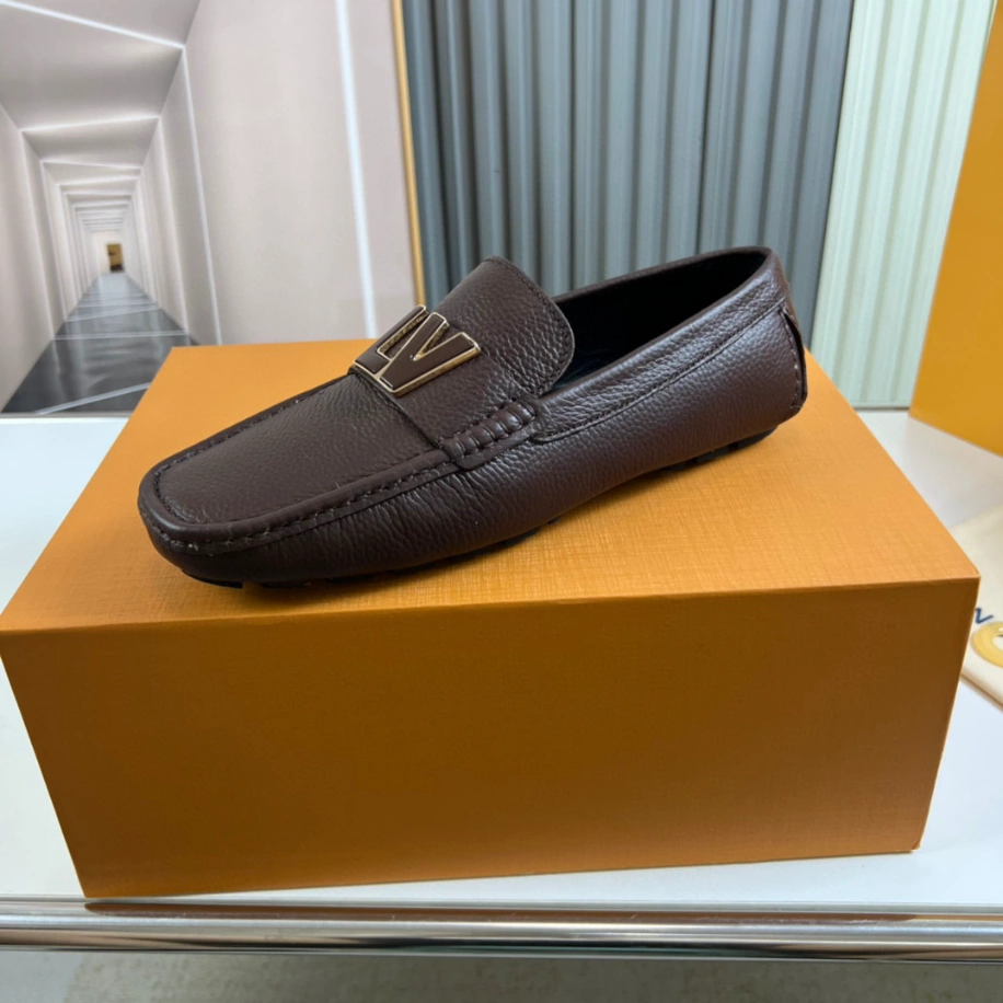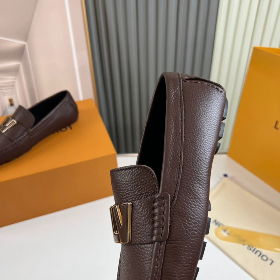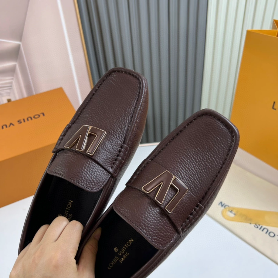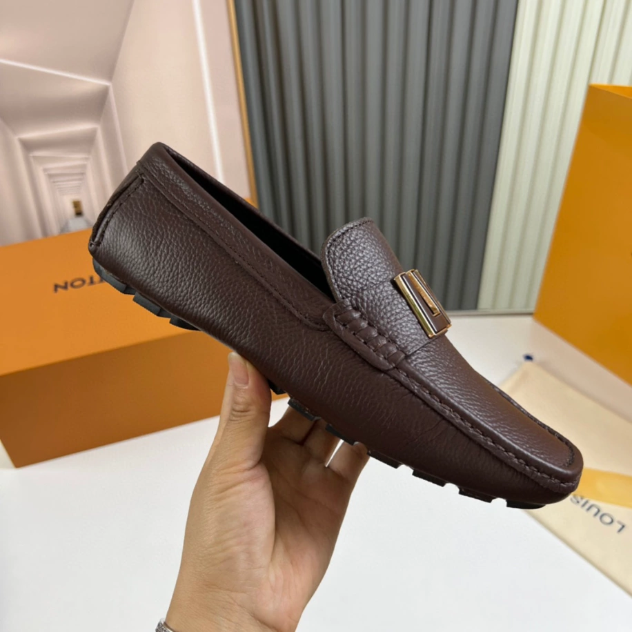 LV Monte Carlo Moccasin – Louis Vuitton's iconic grained Taiga calf leather. this version of the timeless Monte Carlo moccasin features a tubular construction without an insole. ensuring lightness and suppleness. The hand-stitched vamp is adorned with an LV Initials accessory. while the flexible outsole includes rubber pads solely at the front and back.