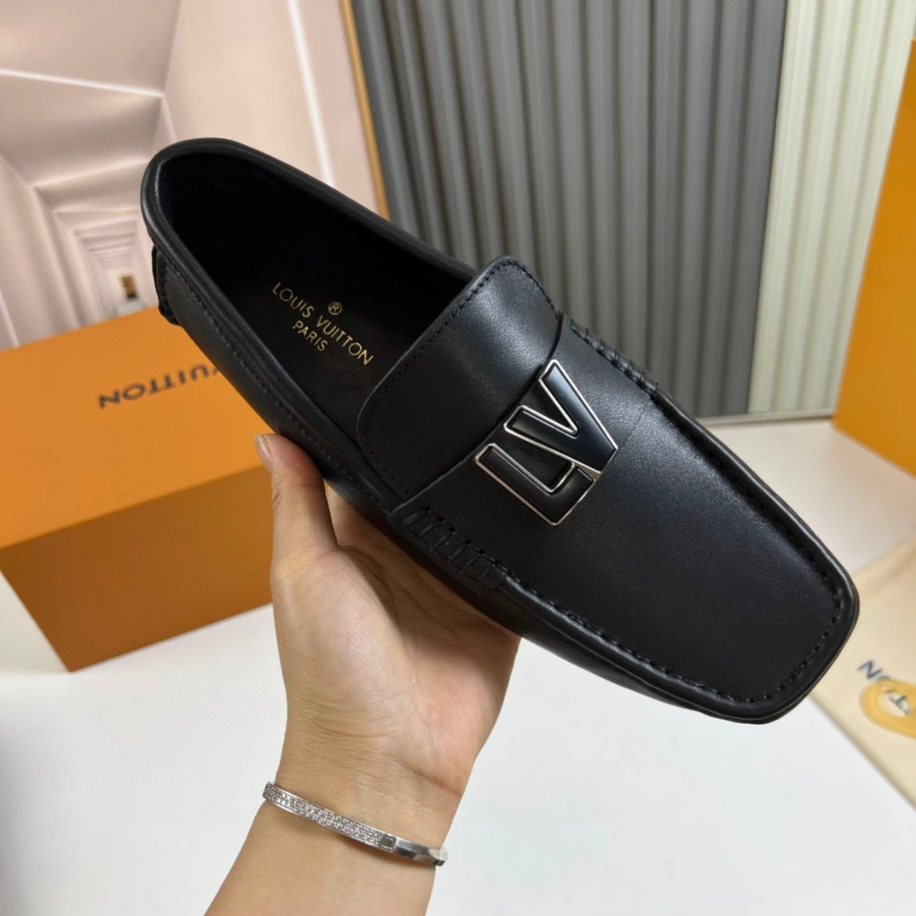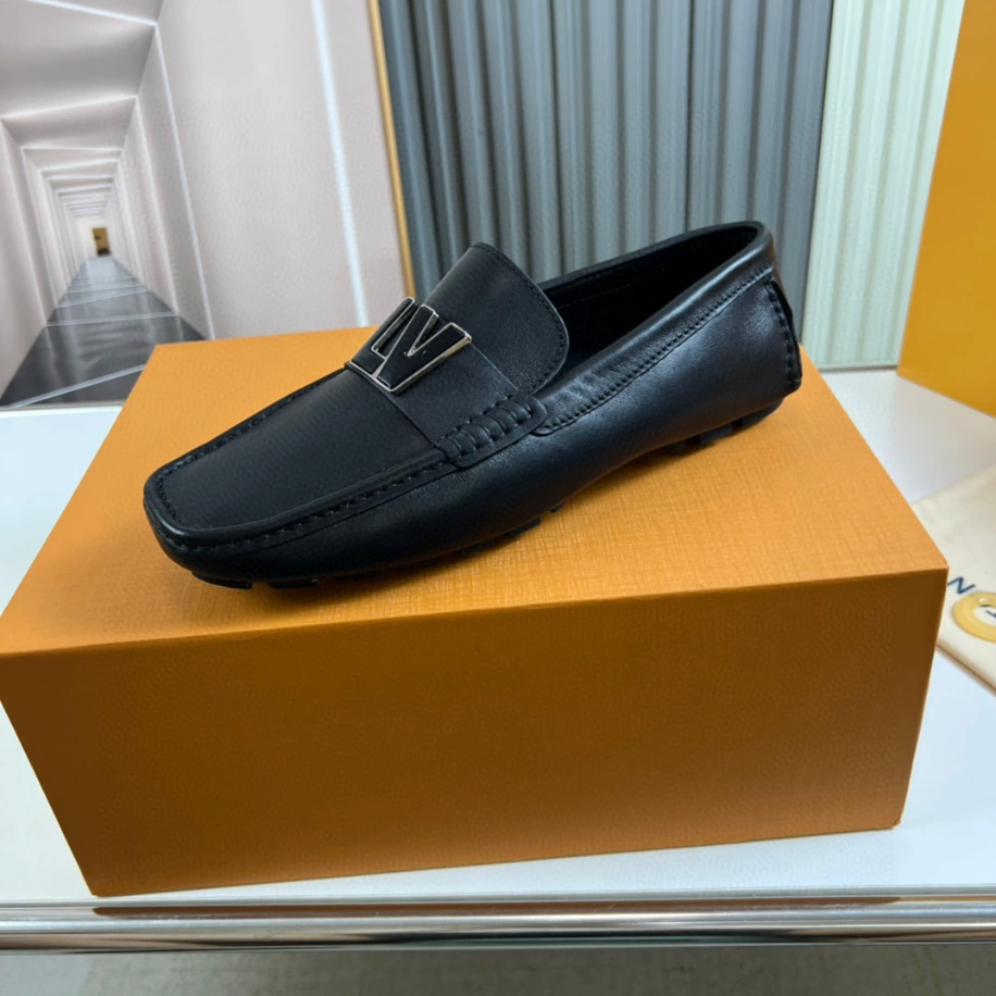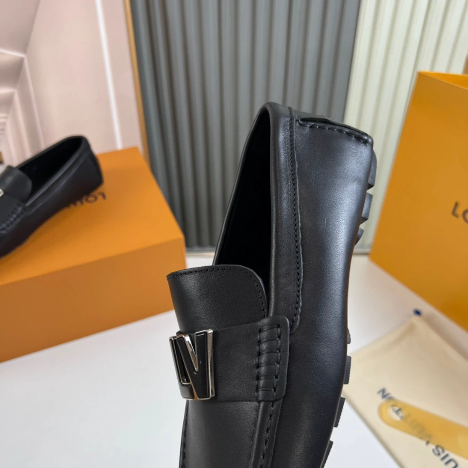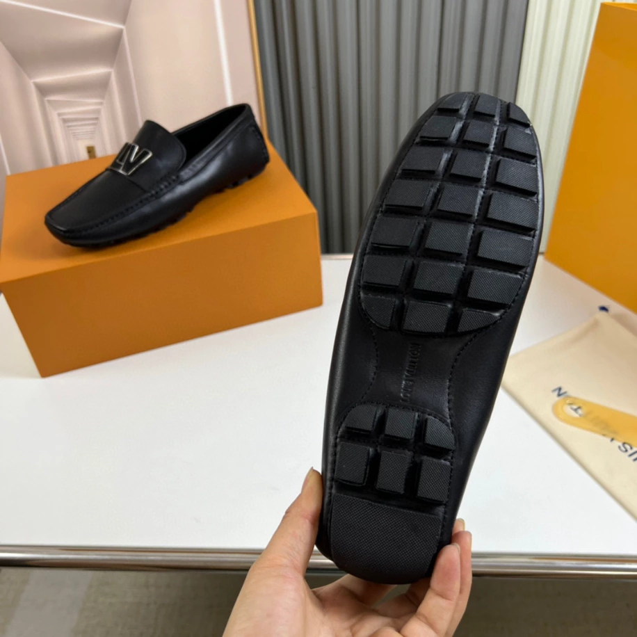 LV Monte Carlo Moccasin – Louis Vuitton's iconic grained Taiga calf leather. this version of the timeless Monte Carlo moccasin features a tubular construction without an insole. ensuring lightness and suppleness. The hand-stitched vamp is adorned with an LV Initials accessory. while the flexible outsole includes rubber pads solely at the front and back.