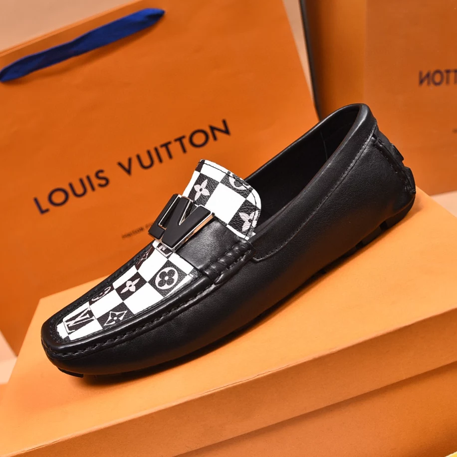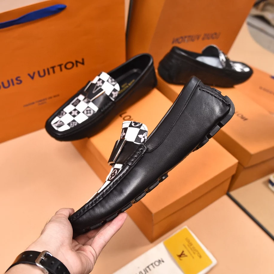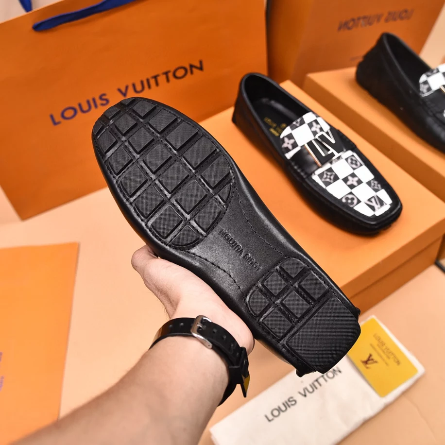 LV Monte Carlo Moccasin – Louis Vuitton's iconic grained Taiga calf leather. this version of the timeless Monte Carlo moccasin features a tubular construction without an insole. ensuring lightness and suppleness. The hand-stitched vamp is adorned with an LV Initials accessory. while the flexible outsole includes rubber pads solely at the front and back.