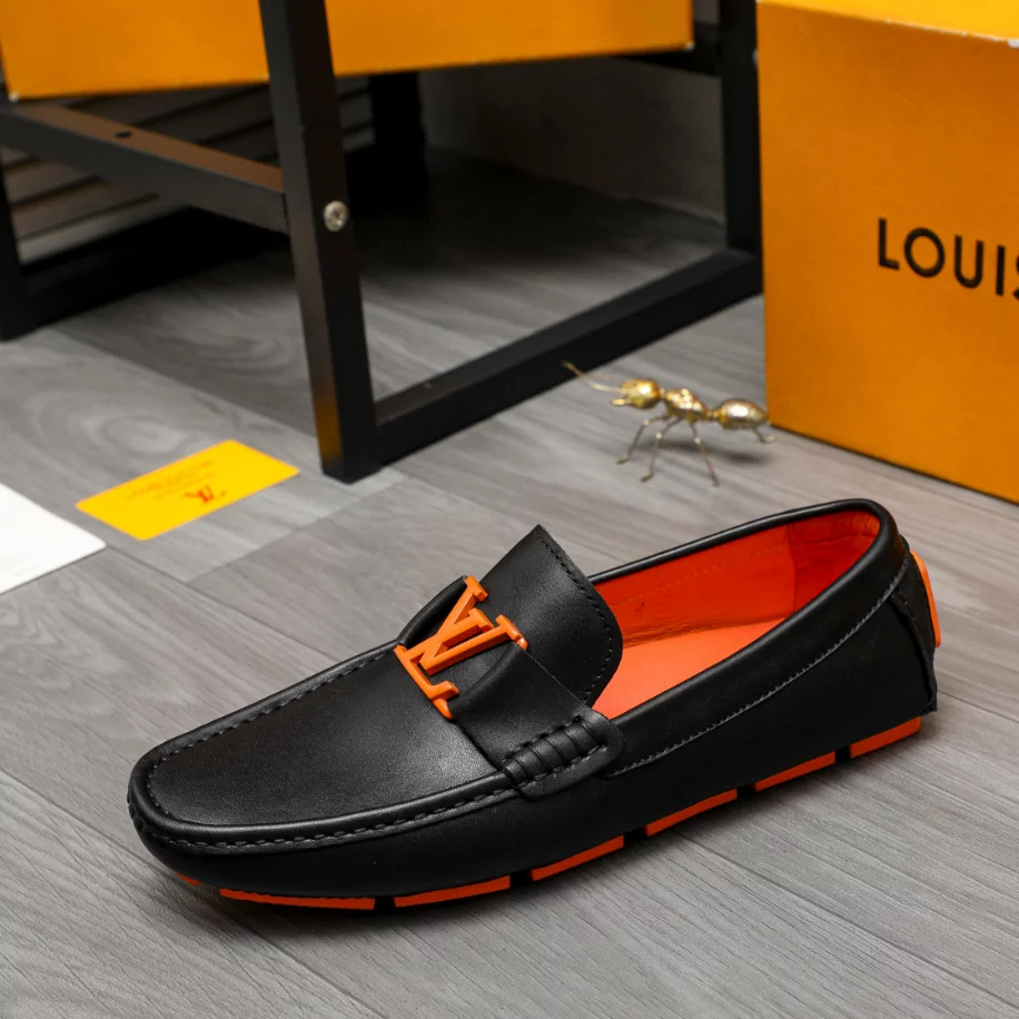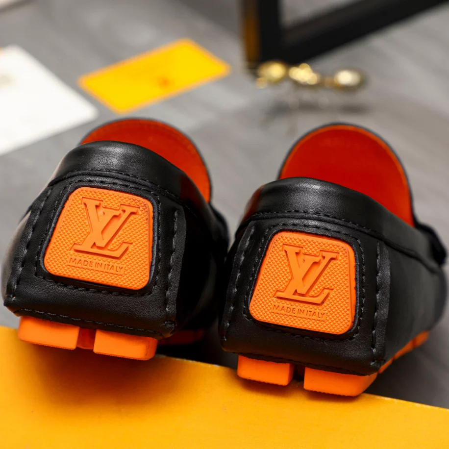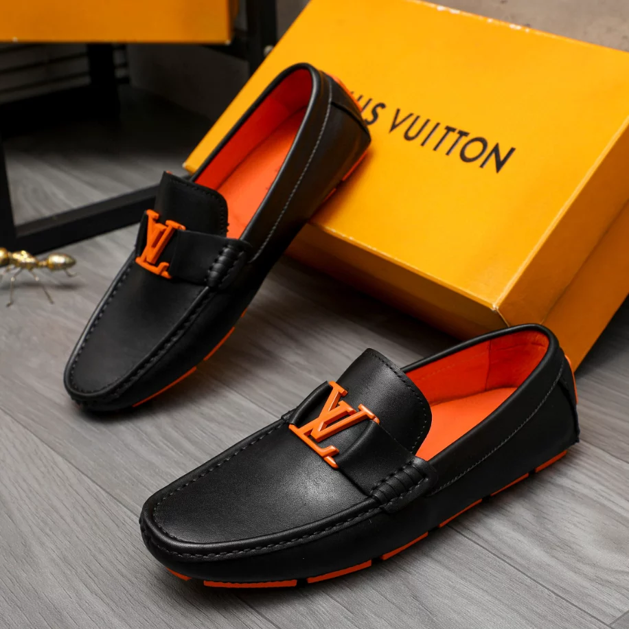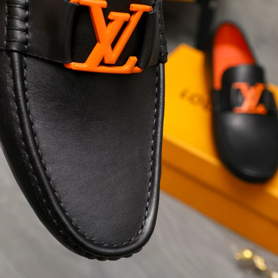 LV Monte Carlo Moccasin – Louis Vuitton's iconic grained Taiga calf leather. this version of the timeless Monte Carlo moccasin features a tubular construction without an insole. ensuring lightness and suppleness. The hand-stitched vamp is adorned with an LV Initials accessory. while the flexible outsole includes rubber pads solely at the front and back.