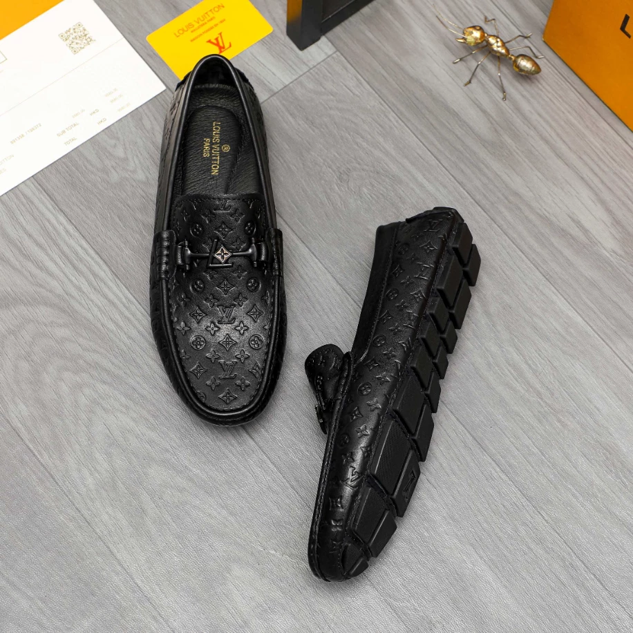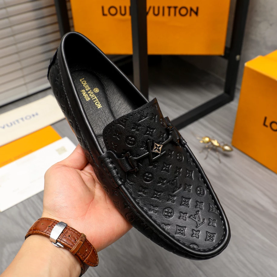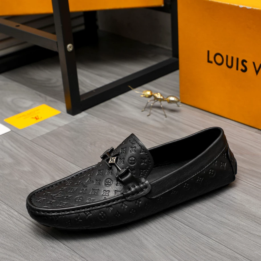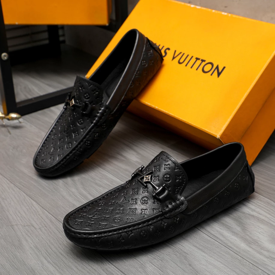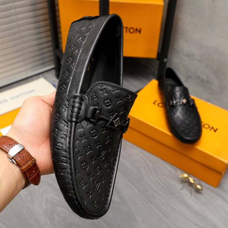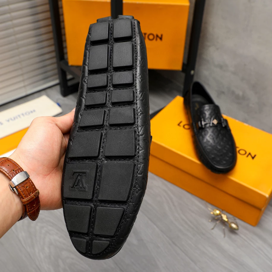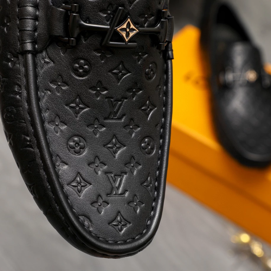 LV Monte Carlo Moccasin – Louis Vuitton's iconic grained Taiga calf leather. this version of the timeless Monte Carlo moccasin features a tubular construction without an insole. ensuring lightness and suppleness. The hand-stitched vamp is adorned with an LV Initials accessory. while the flexible outsole includes rubber pads solely at the front and back.