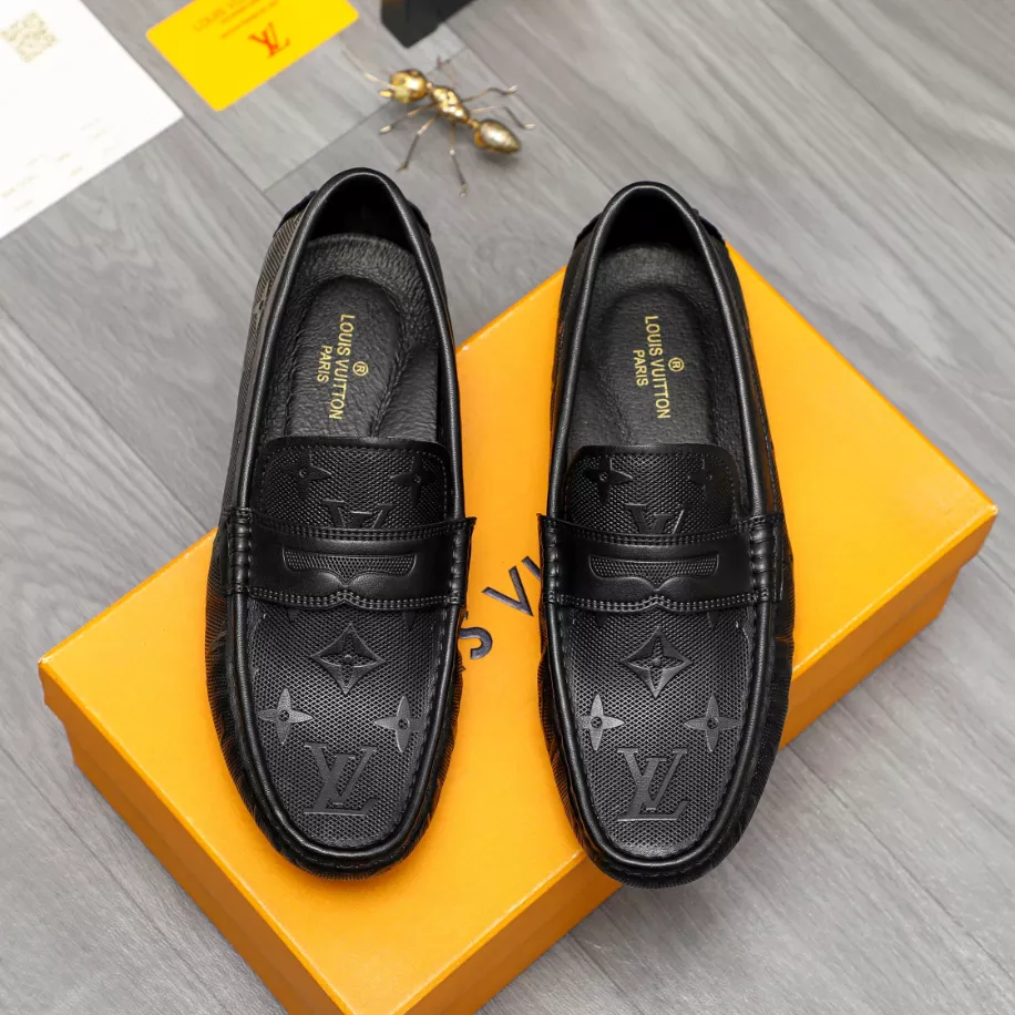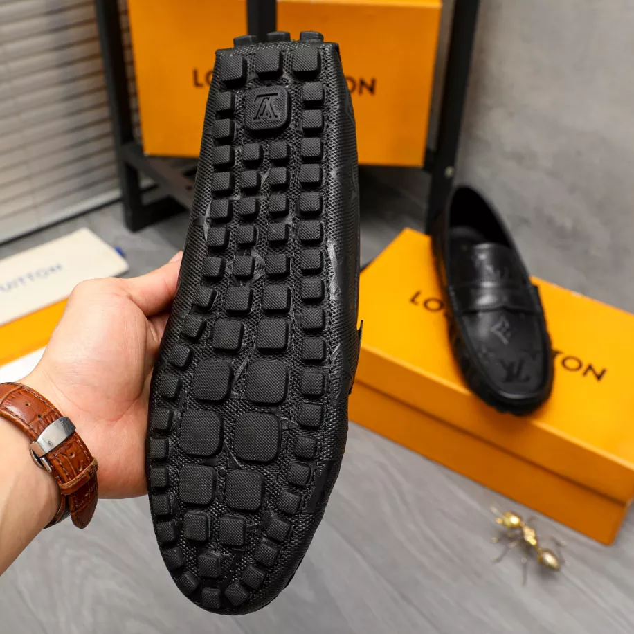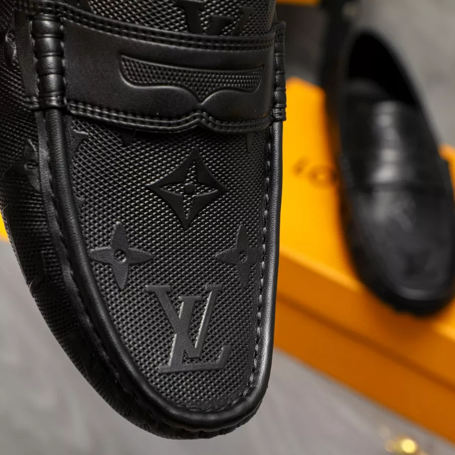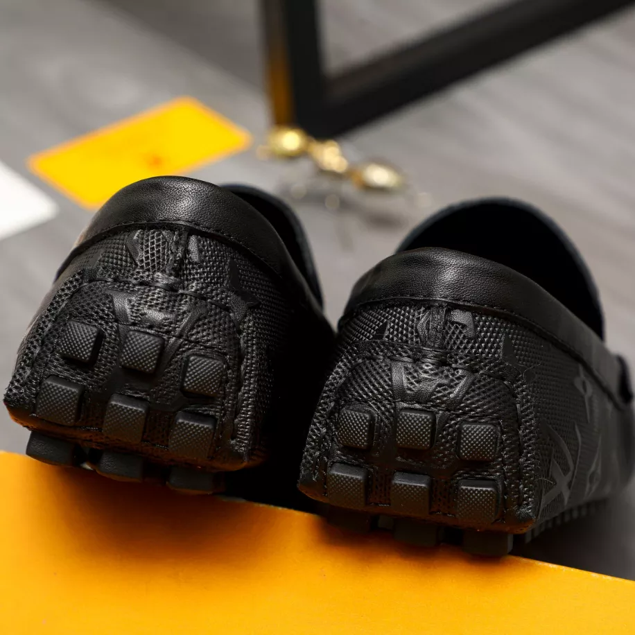 LV Monte Carlo Moccasin – Louis Vuitton's iconic grained Taiga calf leather. this version of the timeless Monte Carlo moccasin features a tubular construction without an insole. ensuring lightness and suppleness. The hand-stitched vamp is adorned with an LV Initials accessory. while the flexible outsole includes rubber pads solely at the front and back.