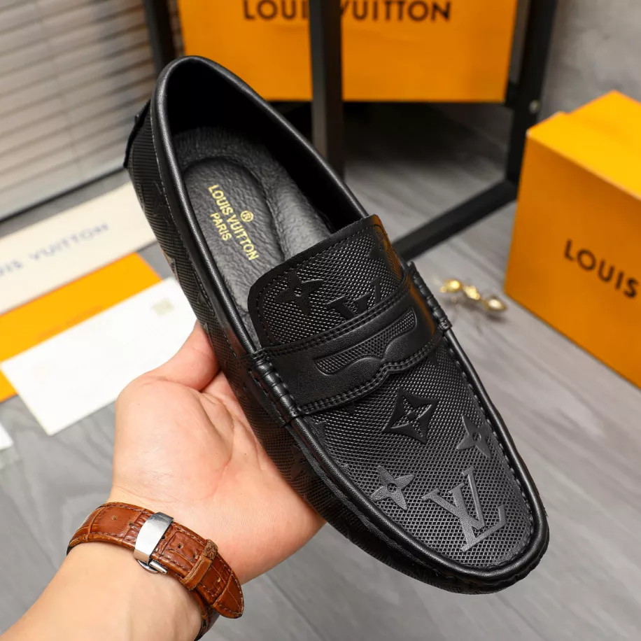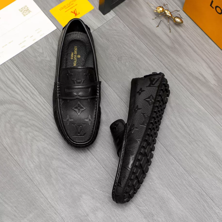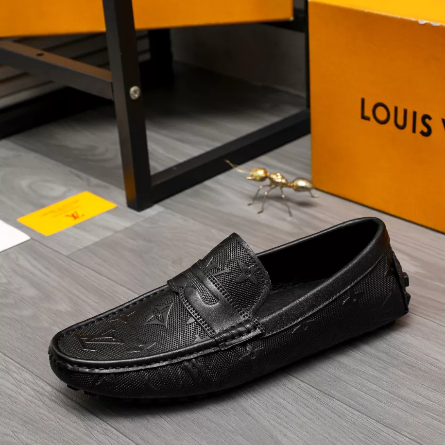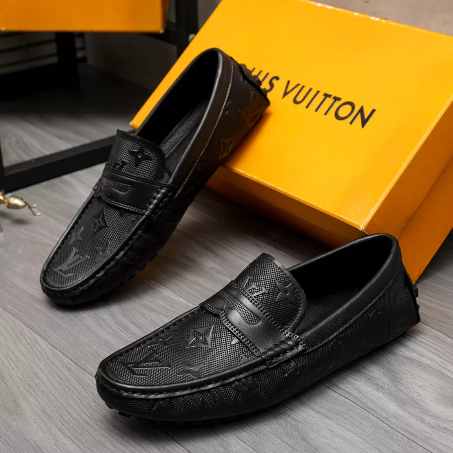 LV Monte Carlo Moccasin – Louis Vuitton's iconic grained Taiga calf leather. this version of the timeless Monte Carlo moccasin features a tubular construction without an insole. ensuring lightness and suppleness. The hand-stitched vamp is adorned with an LV Initials accessory. while the flexible outsole includes rubber pads solely at the front and back.