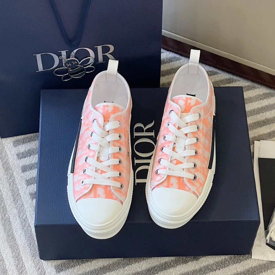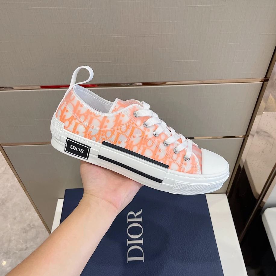 The Dior B23 Low-Top Sneaker stand out with their prominent Dior Oblique pattern. Designed with breathable perforations and a lace-up front. they feature a rubber sole. rounded reinforced toe. and durable construction. evoking the classic style of low-top sneakers. Special contrasting details on the sides and the 'DIOR' signature are distinctive highlights. making these sneakers easy to pair with any casual streetwear outfit..