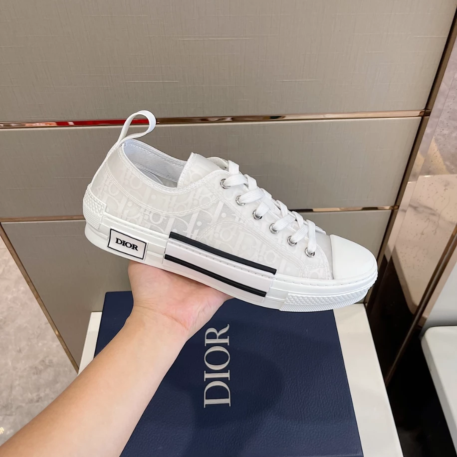 The Dior B23 Low-Top Sneaker stand out with their prominent Dior Oblique pattern. Designed with breathable perforations and a lace-up front. they feature a rubber sole. rounded reinforced toe. and durable construction. evoking the classic style of low-top sneakers. Special contrasting details on the sides and the 'DIOR' signature are distinctive highlights. making these sneakers easy to pair with any casual streetwear outfit..