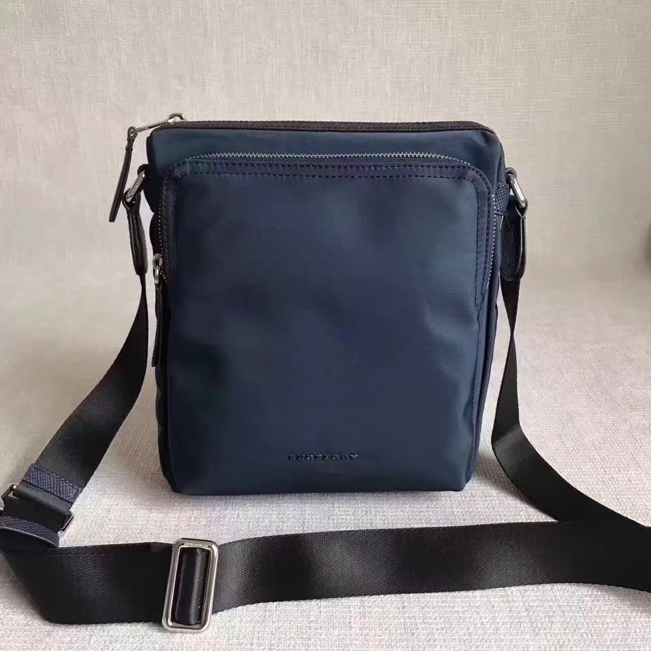 - Burberry Men Small Technical Crossbody Bag with Leather Trim Blue