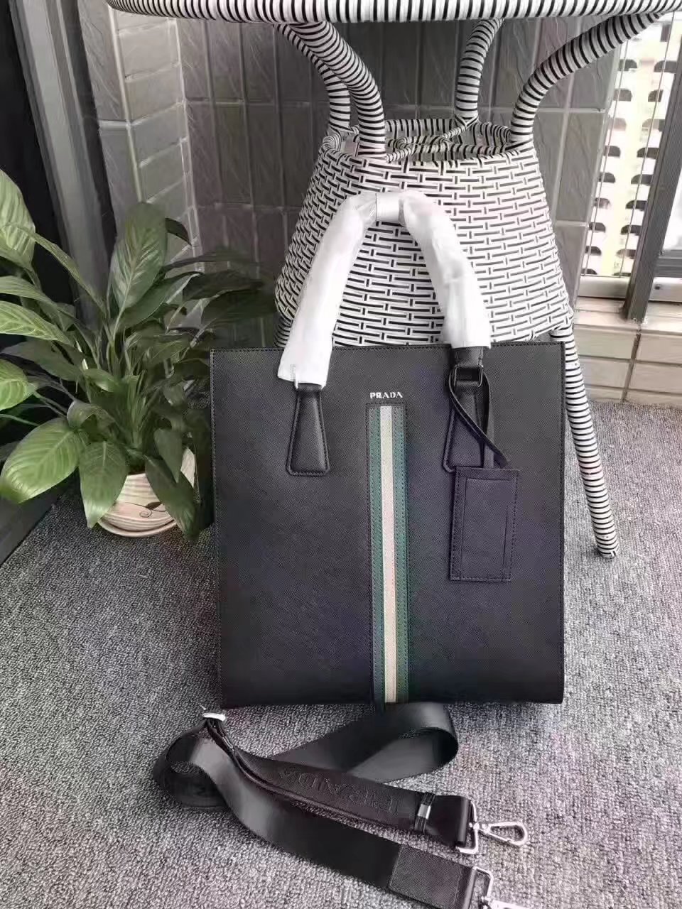 Prada A6665 Men Saffiano Leathe Tote Black