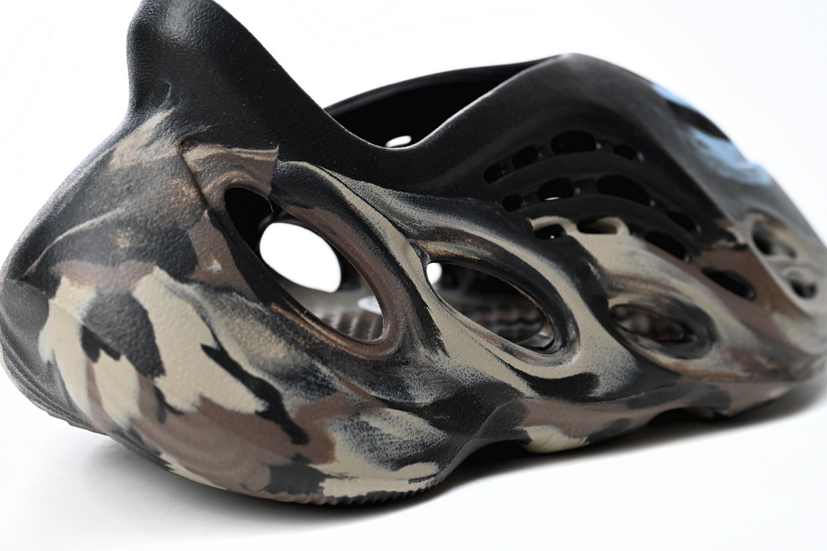 The characteristic of the Cinder color scheme is mainly dark earth brown. with various shades of brown and black on the upper and sole. This color scheme gives the y eezy foam runner cinder a delicate. monochromatic appearance. which is both versatile and fashionable. As for material. c inder foam runners adopts an integrated foam upper. giving it a futuristic and non-traditional appearance. The upper adopts various textures and patterns to create visual interest and depth. also the adidas yeezy foam rnr mx cinder adopts unique design elements. such as no shoelaces. equipped with elastic straps and pull tabs for easy wearing. This shoe also has a thick carved midsole. contributing to its unconventional and fashionable avant-garde appearance.